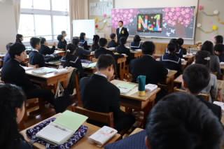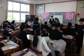 〈登校した子どもたちは、最後の朝の会と先生のお話を聞き、卒業式へ向かいました。〉