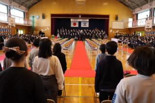 〈いよいよ卒業式です。体育館もいつもと違う雰囲気に包まれています。〉