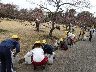 2月13日 2・3年生が、梅取りでお世話になった公園の掃除を、梅まつりのこの時期にしました。