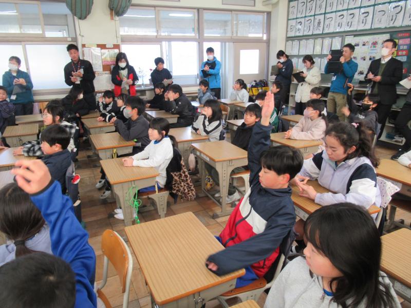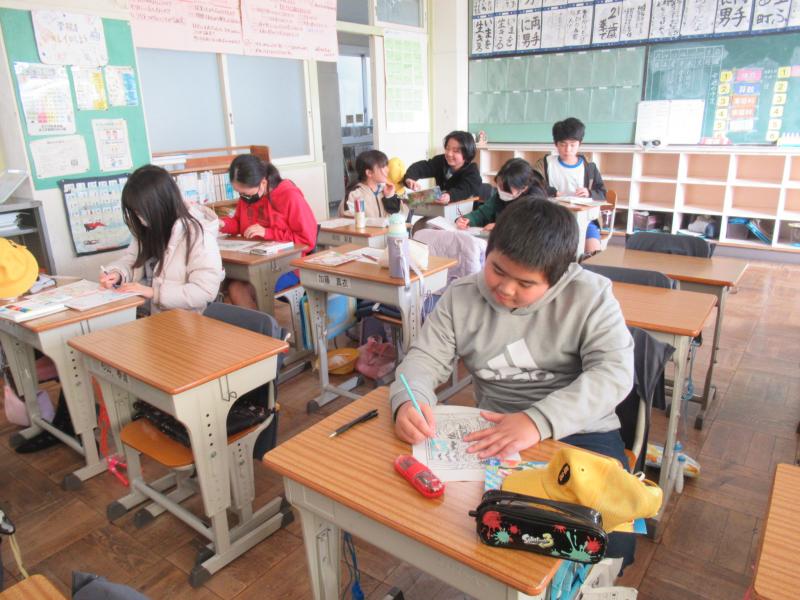 感染予防の観点から、本年度は音楽室で行い、全校児童は各教室にて中継で参加しました。多くの方々に支えられて本年度も幅の広い教育活動が行うことができました。