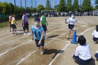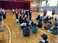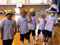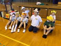 チームごとに自己紹介をした後、汐田小児童の皆さんの司会進行のもと、「こおりおに」をしました。くじ引きで選ばれた小学生と中学生のそれぞれ1学年が、鬼になりました。中学生の鬼はキャラクターの帽子をかぶり、お兄さん、お姉さんとして、小さい小学生に優しく配慮しながらも全力で追いかけていました。