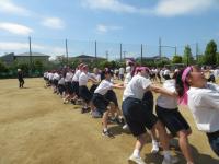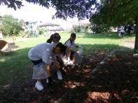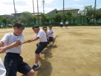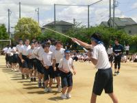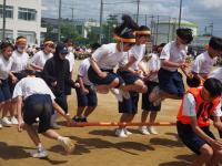 次のゲーム「猛獣狩りに行こうよ」は、牟呂小児童の皆さんの司会進行のもと、お題の人数が集まったら仲間で手をつないで座りました。中学生のお兄さん、お姉さんらしくみんなが仲間に入れるように声をかけていました。