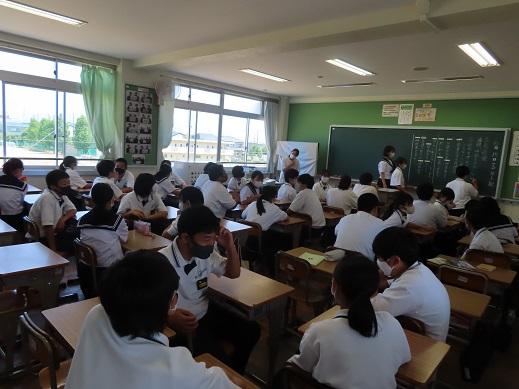 7月4日にKDDIの方による出前講座『スマホ・ケータイ安全教室』を、3年生は5時限目に、1・2年生は6時限目に分かれて行いました。生徒たちにとって身近なスマートフォンやタブレット。どんなトラブルに巻き込まれることがあるのか、逆にトラブルの原因をどのように作っているのかなど、知っているようで知らなかったことを、わかりやすく教えていただきました。個人情報の取り扱いやSNS等への書き込み、写真のアップなど、犯罪につながる可能性について学んだので、今後の使い方に生かしてほしいです。また、家庭でルールを決めることやフィルタリングの設定についてのお話もありました。スマホに振り回されることなく、便利なツールとして活用していけるとよいです。