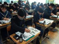 11月27日(木)競書大会が行われました。全学年実施、どの生徒も練習の成果を発揮しようと、真剣にと取り組む姿が素敵でした。