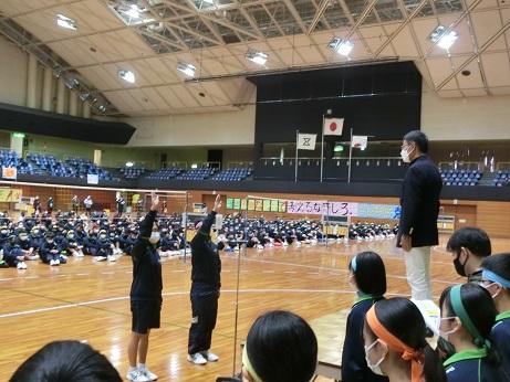 社会を明るくする運動の一環として、校区の保護司会・更生保護女性会の代表のみなさんから、自動検温計と絆創膏を寄付していただきました。絆創膏については全員に配付、検温計は保健室で活用していこうと考えています。地域の方々が本校・本校生徒のことを考えていただいていることに改めて感謝します。ありがとうございました。