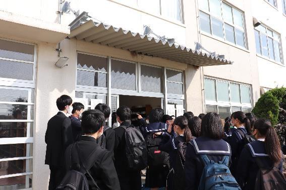メールでもお知らせしましたが、検温を行う期間中、登校時間を7:50~8:15と限らせていただきます。早く登校しても昇降口は開いていませんので、時間を調節して登校してください。