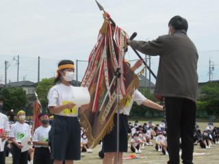 オーケストラ部が「CBCこども音楽コンクール重奏部門」、「日本学校合奏コンクール2021全国グランドコンテスト合奏部門」で全国大会に選出されました。今年度は創立75周年という節目の年であり、長きにわたりよい成績を収めている同部の功績を称え、横断幕を寄贈してもらいました。