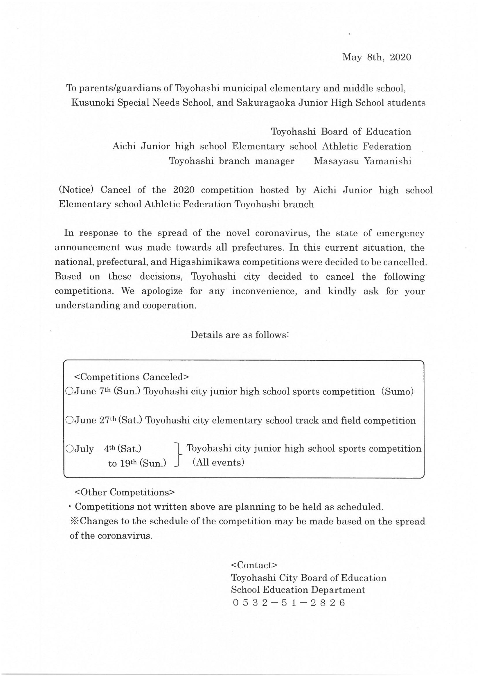 令和2年度愛知県小中学校体育連盟主催大会の中止について