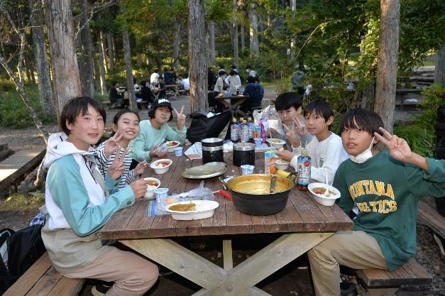飯盒炊飯では、美味しいカレー作りに協力しながら取り組んでいました。「自分たちの班のカレーライスが一番美味しい」と自慢し合う生徒たちの様子も楽しそうでした。