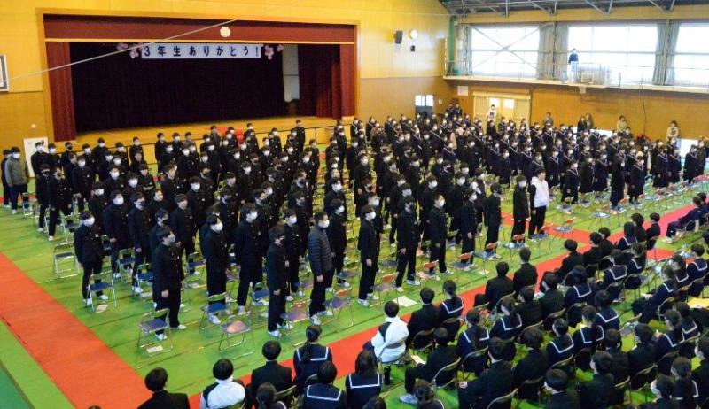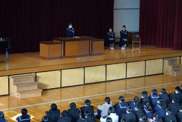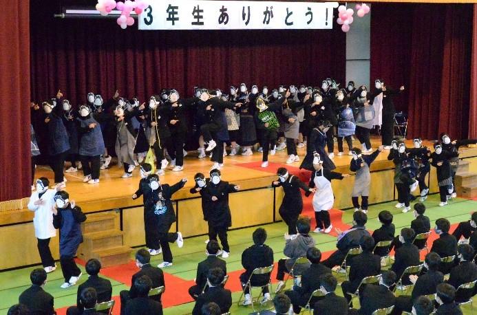 2月29日(木)に、全校生徒が本校体育館に集まり、「3年生を送る会」を開催しました。