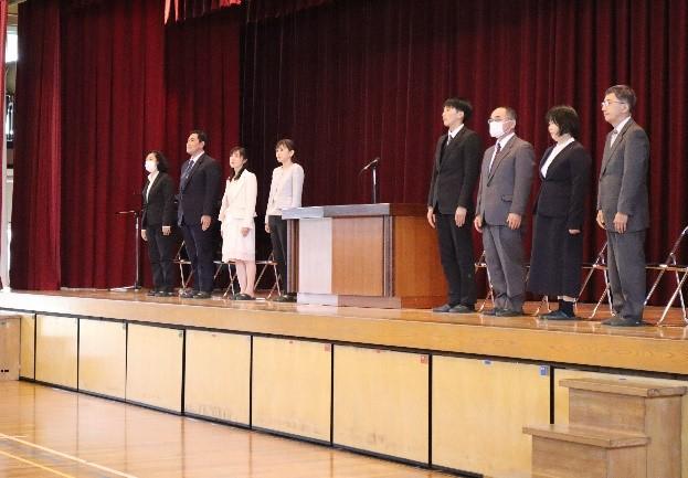 転任された8名の先生がた、お一人お一人から、お話をいただきました。南部中学校での思い出、生徒たちへの期待など、心温まるメッセージをいただきました。