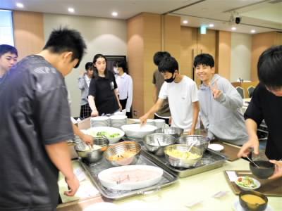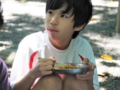 「おにぎり~みんなで支え合って一つをつくりあげよう~」をテーマに、1泊2日の自然体験学習に行ってきました。天候が心配されましたが、雨が降ってきたのは野外炊飯の片づけ時くらいで、全ての日程を予定通り行うことができました。テーマと時間を常に意識し、野外炊飯やキャンプファイヤー、ウォークラリーなどの活動を通して、大きく成長した素晴らしい姿を見せてくれました。仲間と協力する大切さを実感し、友だちのよいところをたくさん見つけて、『1年生の絆』をさらに深めることができたようです。すべての活動に全力で取り組んだ1年生、退所式を終えたあとの顔は、どの生徒も雲ひとつない秋晴れの青空のように輝いていました。