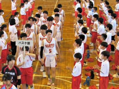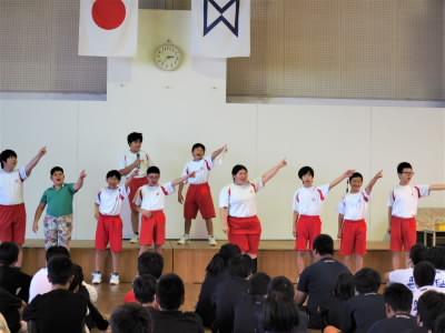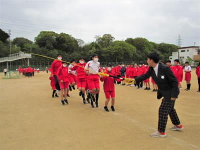 たくさんの来賓、保護者の方々が見守るなか、令和6年度の『南陽五輪(オリンピック)』が開催されました。今年のテーマは「Show time ~ホームラン級の活躍を~」です。青く晴れ渡った空の下、有志による「ソーラン節演舞」を皮切りに「全員リレー」「障害物競走」「リレー」昼休憩をはさんで、「学級目標発表」「綱引き」「台風の目」「長縄」と、学級対抗の熱い戦いを繰り広げました。生徒たちは皆、学級の勝利のために「全力で参加し」「全力で応援し」そして、『五輪成功』のために、それぞれの係の仕事に「全力で取り組み」ました。すべての生徒の『笑顔』あふれる、また、『よさ』が存分に発揮された、すばらしい『南陽五輪』でした。まさに全員が、「ホームラン」そして「ホームラン級の笑顔」をかっ飛ばしてくれました。今回、それぞれの学級で深めた『熱い心の絆』を、今後の学校生活にいかしていくことを期待します。