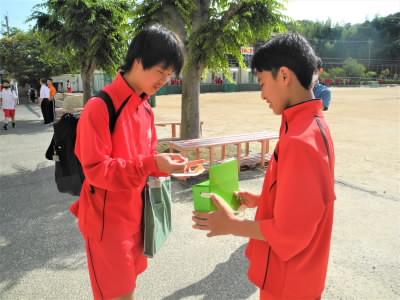 豊橋まつりで『伸びゆく子どもたちの作品展』『子ども造形パラダイス』が開催され、789組と1年生、3年生の作品が展示されました。土曜日の午後に行ってきましたが、会場はとても賑やかでした。写真を撮影していると、南陽中生徒の作品を見て「これいいよね」「すごいね」と言っている人が何人もいました。とてもうれしい気持ちになりました。また、789組ショップ『はっぴい屋』が「アロマワックス」と「シューキーパー」を販売しました。生徒たちのがんばりで、用意した商品を完売することができました。生徒たちもお客さんも笑顔いっぱいの、まさに『はっぴい屋』でした。ご来店いただいた皆様、ありがとうございました。