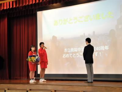 アイプラザ豊橋で『40周年合唱コンクール』を行いました。1学期から各クラスで、楽曲決めや指揮者・伴奏者の選出などの準備を進め、2学期に入ってからは、授業や休み時間、7時間目の時間を使って「ひとつの音」「ひとつの言葉」にまでこだわった、熱い練習に取り組んできました。本番では、どのクラスの合唱も素晴らしく、聴き惚れてしまいました。また、学年とともにレベルが上がることを実感し、特に3年生の合唱は、その合唱の世界に会場中の人々が入り込んでしまうかのような、とても素敵なものでした。さらに、どのクラスも、どの生徒も、「全力で」「生き生きと」歌う姿に感動しました。『歌声の南陽』と呼ばれるにふさわしい、『40周年合唱コンクール』でした。