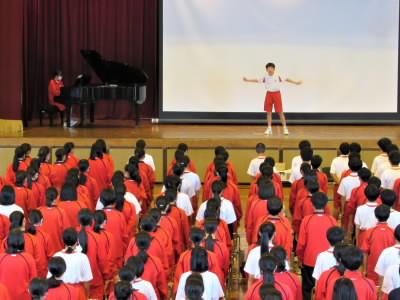 『南陽五輪(オリンピック)』の練習が始まりました。第1回は、座席の確認と、「開会式」「閉会式」の隊形移動等の練習、そして、みんなで長縄の練習をしました。真剣に取り組みながらも、長縄の練習になると笑顔があふれ、今から5月9日の本番が楽しみになりました。