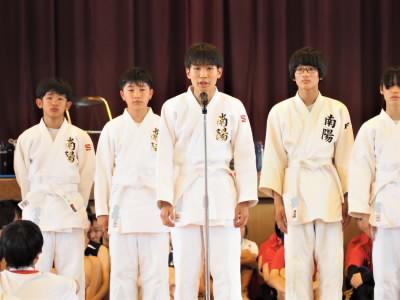 2学期の終業式を行いました。代表生徒による「2学期の振り返り」は、二人とも2学期にがんばったことと新たな目標についてしっかりと発表でき、とても立派でした。明日からいよいよ『冬休み』!下校する生徒たちも、いつも以上に笑顔がはじけています。南陽中生全員が事故なく、元気に、そして、家族とたくさん楽しく過ごして「有意義な冬休み」になることを願っています。