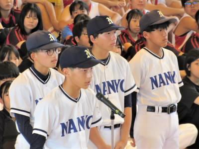 「Nanyo Only Students」…第1回『NOS会』を行いました。5年度後期生徒会執行部のあいさつの後、6年度前期「生徒会執行部」「委員会の委員長と副委員長」そして、「学級三役」の代表に任命証が手渡され、全校生徒の前で決意や抱負を語りました。地声で叫ぶ「ありがとうございました」「よろしくお願いします」の声と、全校生徒の拍手が何度も何度も体育館に響き渡りました。とても頼もしく感じるとともに、これから本格的に始まる一年が、ますます楽しみになりました。
