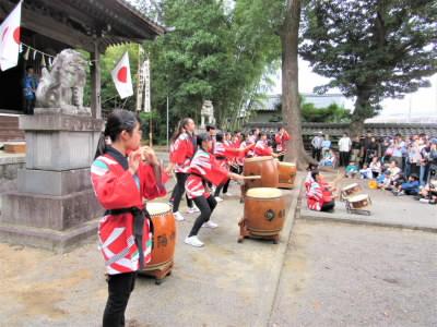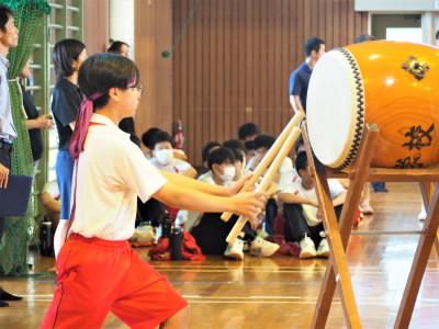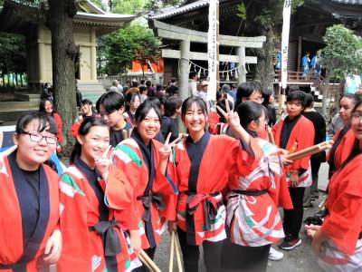 地域の祭礼(草間町「春日神社」と一色町「八幡社」)に太鼓部が参加し、演舞を奉納しました。たくさんの地域の方々が見守るなか、全力の演舞を披露しました。見学していた高齢女性が「学校の先生ですか。とても感動しました。ありがとうございました。」と声をかけてくださいました。太鼓部のみなさん、とても格好よかったです。そして、すばらしい演舞でした。