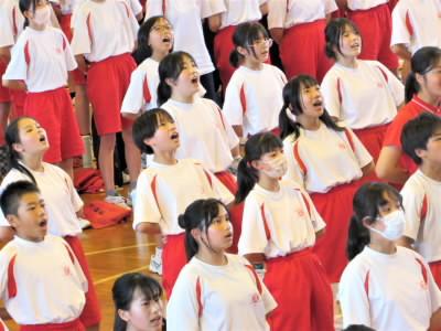 心配されたグラウンドコンディションも回復し、外で練習することができました。『ソーラン節演舞』と『長縄』の最後の練習(リハーサル)を行いました。みんな全力で取り組み、今日の青空のようなさわやかな笑顔が広がっていました。さぁ、いよいよ『南陽五輪』本番です!