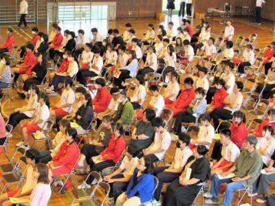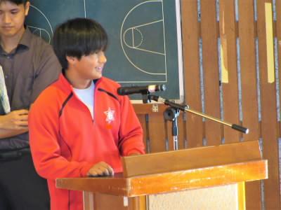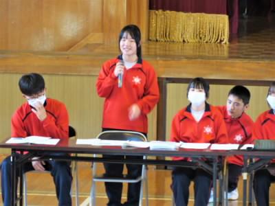 『第2回 生徒総会』を行いました。「南陽中パワーアップ大作戦」と題して、生徒会執行部や各委員会の活動に対する質問や要望等の質疑応答と、学習委員会と生活委員会からの提案(「テスト週間の昼放課の学習」と「廊下の過ごし方」)について討論が行われました。討論は意見のある生徒が学年の前に設置されたマイクの前に立ち、議長に指名されたら発言できるのですが、実に多くの生徒が積極的に発言をし、とても興味深かったです。とくに卒業まで2か月あまりとなった3年生の発言が多く、「南陽中学校をよりよくしたい!」「…していってほしい!!」という『南陽愛』がひしひしと伝わってきました。また、一人発言するたびに会場中から温かな拍手が沸き起こるのもすてきです。生徒自身が自らの学校生活を振り返るとともに、「自分たちの南陽中学校を、自分たちで創っていく!」という思いを高めることができたと思います。そして、生徒総会終了後にはたくさんの生徒が表彰されました。