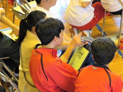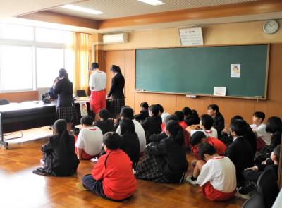 期末テストが終了した午後、非行防止教室としてKDDIから講師の先生をお招きし、『スマホ教室』を行いました。3つの事例の動画をもとに、生徒たちが問題点を話し合い、全体の場で発表しました。同じ事例でも、生徒によってとらえ方は様々であることに、とても興味深く感じました。とても便利な「スマホ・ケータイ」ですが、危険な面も多々あります。正しい知識で、かしこく使いこなしてほしいと願います。
