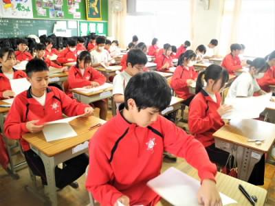 3年生が『計算コンクール』を実施しました。直前の2限の放課まで必死にプリントを確認する姿に、「さすが3年生!」と感心しました。テスト用紙が配付されると教室中に緊張が走り、開始の合図と同時に全員が一斉に鉛筆を走らせます。『CATCH YOUR MERI-HARI』…まさに「ヤルときはヤル」3年生です。