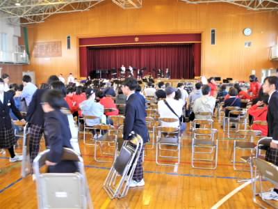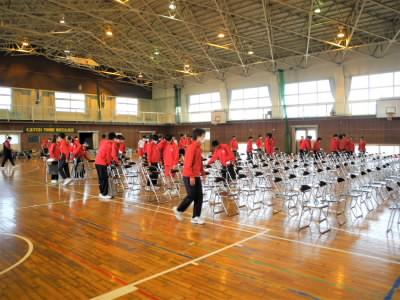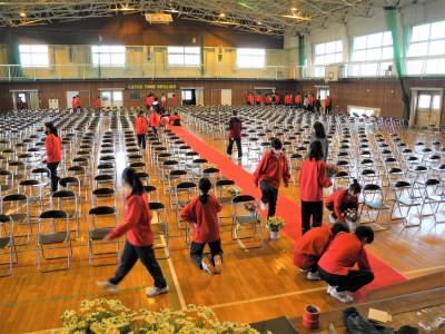 新3年生が登校し、入学式の準備を頑張りました。掃除や教室等の飾りつけ、教科書配付、会場準備など、全員が協力してとても真剣に取り組みました。自ら進んで動き、丁寧に取り組み、そして、笑顔で活動している様子から、新入生の入学を心待ちにしていることがうかがえました。太鼓部のリハーサルもばっちりで、とても素敵でした。3年生の皆さん、ありがとう!新入生の皆さん!!待っています。