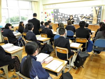 学校評議員(校区等の代表)の方々に、南陽中学校の経営方針や現在の様子等をお伝えし、意見や助言をいただく「学校評議員会」を開催しました。話し合いのあとは、各教室の授業を参観して回りました。どの教室も生徒たちが生き生きと活動する場面がみられ、評議員の方からはさまざまな質問を受けました。また、評議員のみなさんも思わず笑顔になってしまう場面がいくつもありました。生徒たちの「さわやかなあいさつ」と「授業に意欲的に取り組む姿勢」等、たくさんほめていただきました。