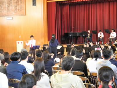 吹奏楽部が体育館で『春の演奏会』を行いました。たくさんのご家族の皆様や友達たち、教師が観客として来場し、急遽座席を増やしたほどでした。200名ほどの観客が見守る中、吹奏楽部のみんなは日々の練習の成果を披露し、素敵な演奏を聴かせてくれました。夏のコンクールも期待できそうです。
