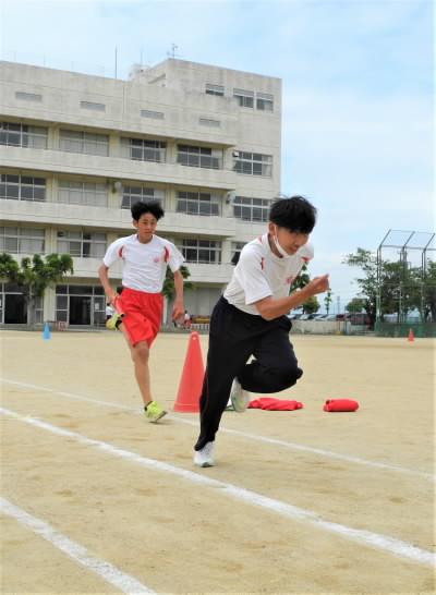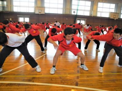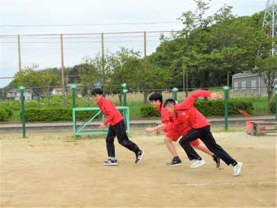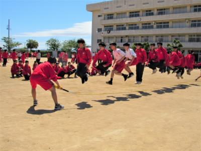 『南陽五輪』が1週間後に迫り、練習にも熱が入ってきました。7限には、1年生が「長縄」、3年生が「全員リレー」の練習をグラウンドで、2年生が「綱引き」の練習を体育館で行いました。1年生の「長縄」は、ずいぶん上手になりました。「1」「2」「3」…!回数を数えながら応援する大きな声が、グラウンドに響いていました。ダンスをしながら、楽しそうに応援するグループもあり、とても盛り上がっていました。「並び順をかえた方がいいのでは」「狭いからもっと列を伸ばそうか」・・・。生徒たちが、記録を伸ばすために自ら改善しようと、工夫する姿がみられました。