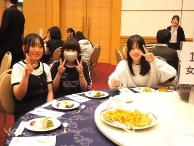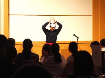 前日に続き、公益財団法人『銕仙会(てっせんかい)』《東京都》から多くの能楽師の方々をお招きし、文化庁による学校巡回公演「ようこそ!能楽の世界へ!~能楽で観る鬼退治~」を開催しました。狂言「柿山伏(かきやまぶし)」と能「土蜘蛛(つちぐも)」を鑑賞し、狂言と能の違いも味わうことができました。目の前で繰り広げられるホンモノの演奏や謡、舞(演技)の迫力に圧倒されながらも、舞台にくぎ付けになって、食い入るように見つめる、生徒たちの姿が印象的でした。質問コーナーでは、多くの生徒が途切れることなく質問し、中には、囃子方が鼓(つづみ)を打つ姿に魅了され、「自分もやってみたい。どうしたらなれるのか。」と、楽屋にまで出向いて熱心に話をきく生徒もいました。~ CATCH YOUR DREAMS ~ 普段味わうことのできない貴重な体験をし、生徒たちの「すご~い」や「おもしろ~い」の声と笑顔があふれる鑑賞会でした。『銕仙会』の皆様、本当にありがとうございました。