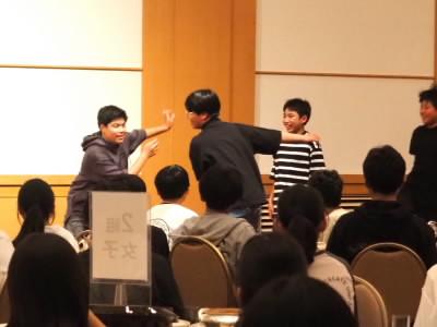 公益社団法人『銕仙会(てっせんかい)』《東京都》から3名の能楽師の方をお招きし、文化庁による学校巡回公演「ようこそ!能楽の世界へ!」を開催しました。将来を担うすべての子どもたちの豊かな感性を育む場を作り、芸術鑑賞能力の向上を図るとともに、文化的な地域格差の解消を促進することを目的として、文化庁が行っているものです。1日目は、ワークショップとして、能楽師の方々と一緒に「附祝言(つけしゅうげん)」を謡ったり、姿勢や足の運びを実演したりしました。担任の男性教師に「若い女性の装束」の着付けを実演するなど、生徒たちが楽しく参加できるような工夫が随所にみられました。これまでに『能』は観たこともない生徒がほとんどでしたが、とても楽しそうに参加している様子が印象的でした。2日目は、「お囃子」等の方々もさらにお越しいただき、1・2年生が参加して本格的な『能楽鑑賞会』を開催します。とても楽しみです!