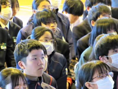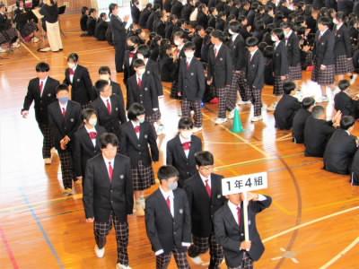 1・2年生が2限に、3年生が3・4限に、『はじめての卒業式練習』を行いました。教師から式やその練習に臨む姿勢等の話を聞いた後、様々な所作(座り方や礼の仕方等)の練習をし、3年生はさらに「入退場」や「卒業証書授与」「合唱」に取り組みました。普段はとてもにぎやかな『南陽中生』ですが、教師が前に立つとその顔つきが変わり、その緊張感から「立派な卒業式にしたい!」の思いが、1・2年生からも3年生からも伝わってきました。緊張のあまり、独特な歩き方をする生徒が何人かいましたが、ドンマイです。また、3年生の生徒が「覚えることが多すぎて、頭がおかしくなりそう!」と笑顔で話していました。卒業式まであと1週間!練習を頑張るとともに、一つでも多くの楽しい思い出をつくって、学級や学年の絆をさらに深めてほしいと思います。
