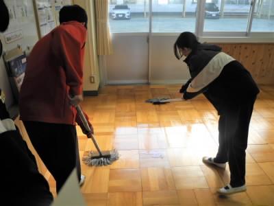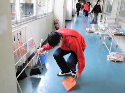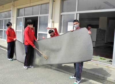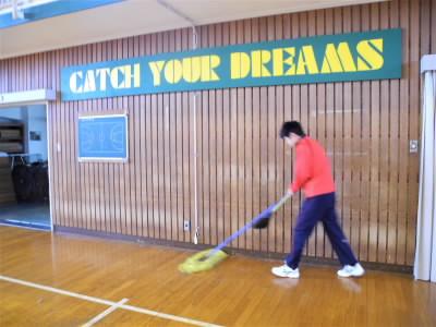 1・2年生が「学年末テスト(1日目)」を終えて下校した午後、3年生が「奉仕作業」を行いました。小グループに分かれて学校中に散らばり、ワックスをかけたり、手の届かない高い場所のクモの巣をとったり、普段の掃除ではなかなかできないところまできれいにしました。トイレで集中して磨いている生徒に、「みんながやりたがらないトイレ掃除をしてくれてありがとう」と言うと「3年間毎日、よく使ったから…」のこたえ!『すばらしい!!』作業を終えて体育館に集合した生徒たちの顔は、皆とても清々しくいい表情をしていました。ある生徒が「学校もきれいになったし、心もきれいになりました。『最高』です!」と、眼を輝かせて話してきました。本当に素敵な生徒たちです。みんな『最高の笑顔』で帰っていきました。