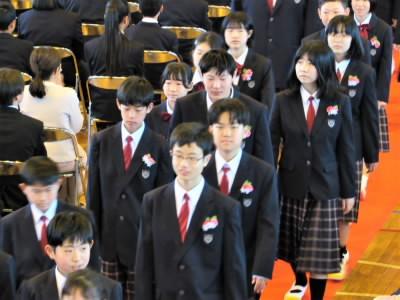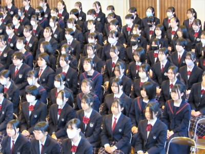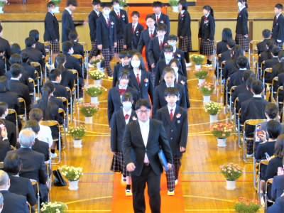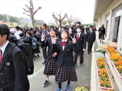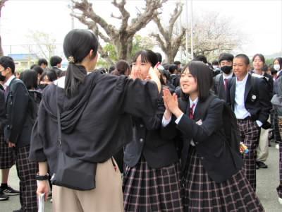 あたたかな陽射しが降り注ぐなか、『第40回 卒業証書授与式』を挙行しました。多くの来賓、保護者の皆様のあたたかなまなざしに見守られるなか、155名の卒業生全員がとても立派な姿で巣立っていきました。在校生は、1年後・2年後の自分の姿を思い浮かべながら、3年生の素敵な姿を瞳に焼き付け、そして見送っていました。校舎を出た後、いつまでも名残惜しそうに、正門付近で写真撮影等、和やかに過ごす卒業生の姿が印象的でした。卒業生の皆さん、卒業おめでとうございます!それぞれの場所での、さらなる活躍を願っています。