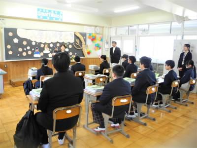 4月に入学する6年生のみなさんと保護者の方々をお迎えし、「入学説明会」を行いました。学校紹介ビデオの上映に続いて発表した2年生の学年合唱『栄光の架橋』!本当に素敵な歌声を体育館に響かせ、私も鳥肌がたちました。合唱を聴く6年生や保護者の様子から、2年生のみなさんの「がんばり」と「メッセージ」は確実に伝わったと思います。その後、時間は短かったですが授業の様子を見て回ったり、興味のある部活動を見学したり、6年生は中学校の雰囲気を感じることができたと思います。少しでも不安が解消され、入学を楽しみにすることにつながれば幸いです。中学生のいつも以上に張り切って活動する姿と6年生のとても礼儀正しい態度が印象に残る「入学説明会」でした。