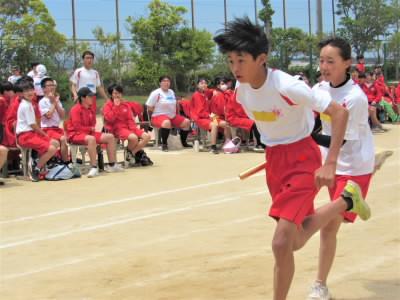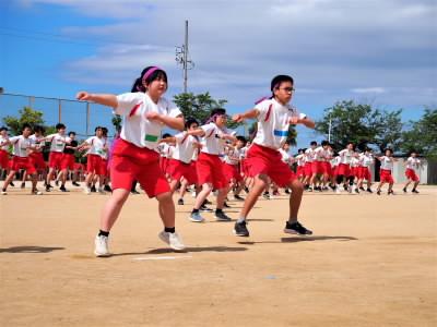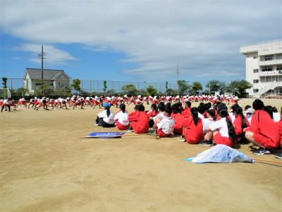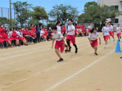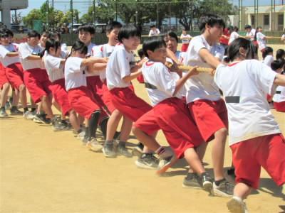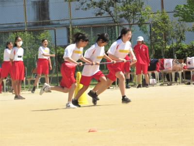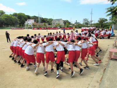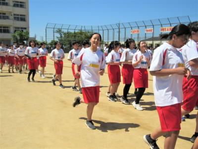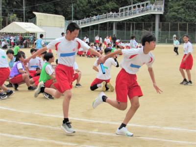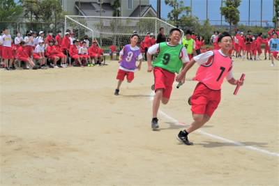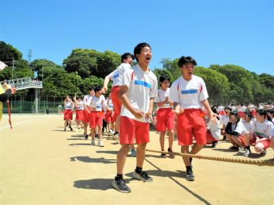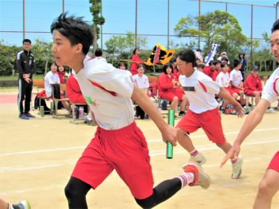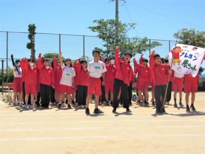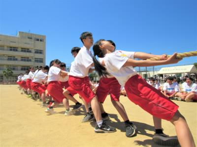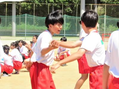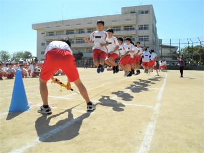 たくさんの来賓、保護者の方々が見守るなか、令和6年度の『南陽五輪(オリンピック)』が開催されました。今年のテーマは「Show time ~ホームラン級の活躍を~」です。青く晴れ渡った空の下、有志による「ソーラン節演舞」を皮切りに「全員リレー」「障害物競走」「リレー」昼休憩をはさんで、「学級目標発表」「綱引き」「台風の目」「長縄」と、学級対抗の熱い戦いを繰り広げました。生徒たちは皆、学級の勝利のために「全力で参加し」「全力で応援し」そして、『五輪成功』のために、それぞれの係の仕事に「全力で取り組み」ました。すべての生徒の『笑顔』あふれる、また、『よさ』が存分に発揮された、すばらしい『南陽五輪』でした。まさに全員が、「ホームラン」そして「ホームラン級の笑顔」をかっ飛ばしてくれました。今回、それぞれの学級で深めた『熱い心の絆』を、今後の学校生活にいかしていくことを期待します。