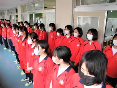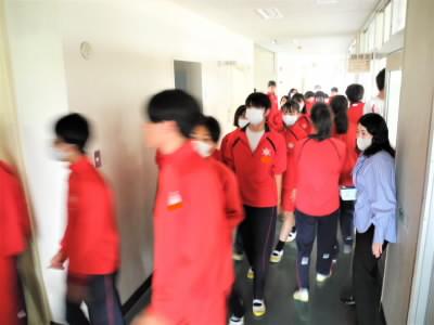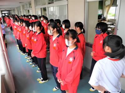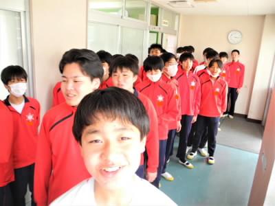 『歌声の南陽』♫を受け継いでいくために、今日から帰りの会の前、全校で合唱練習が始まりました。3年生のフロアを見に行くと、掃除が終わった瞬間に急いで学級に戻る生徒たち。廊下に男女に分かれて整列します。級長が前に出て「もう少し広がって」「静かに!」の指示を出し、教師は寄り添うのみ。全校放送に合わせて『校歌』を合唱しました。3年生らしく、とても迫力のある『すてきな歌声』でした。何より、歌っている生徒たちの表情が、とてもすてきでした。