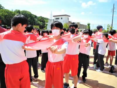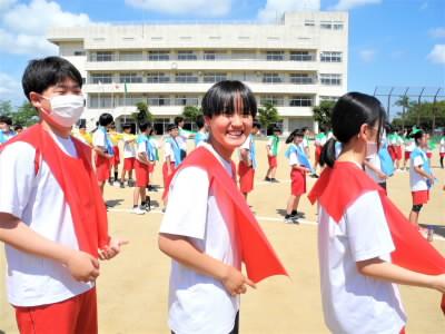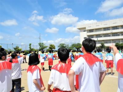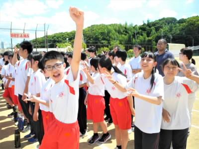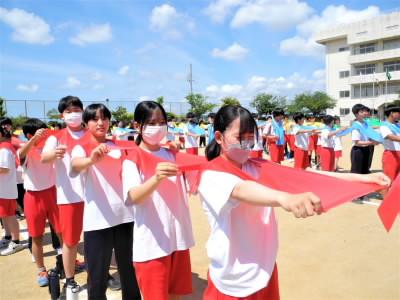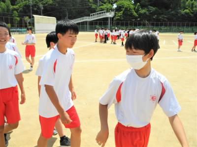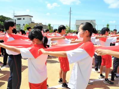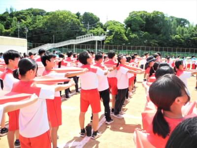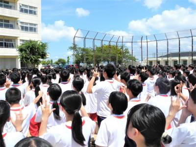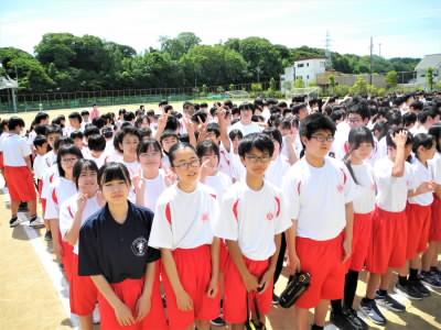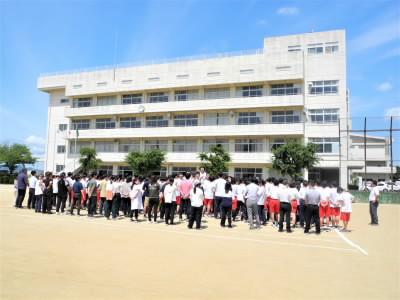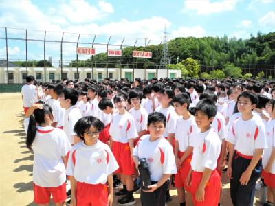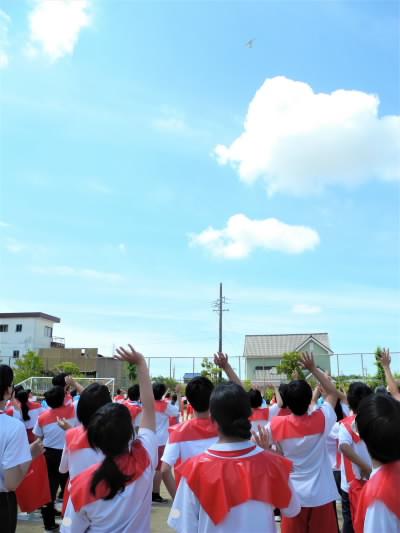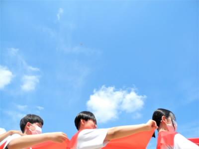 40周年記念の『航空写真』を撮影しました。素晴らしい天気となり、暑かったですが、1年から3年までの全校生徒で、また一つ思い出をつくりました。何をやっても楽しそうな、南陽中の生徒!どんな写真になったのか,とても楽しみです。久しぶりに、空を長時間見上げました。空の色や雲は、すっかり真夏です。