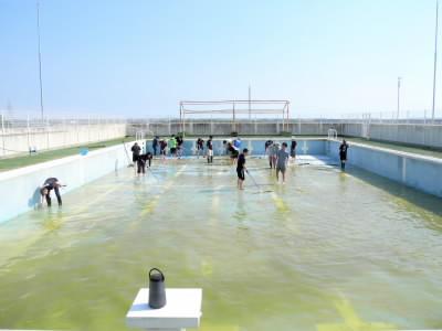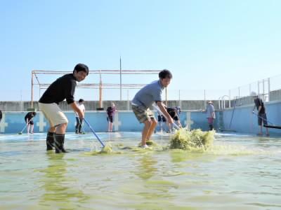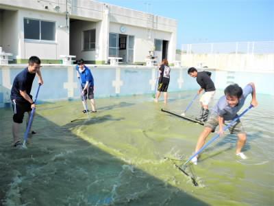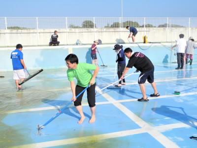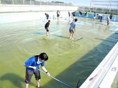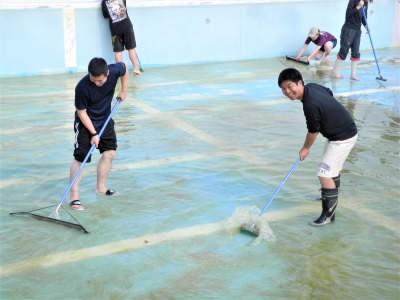 生徒たちが下校したあと、職員で『プール掃除』をしました。暑い中での大変な作業でしたが、楽しく、きれいにすることができました。