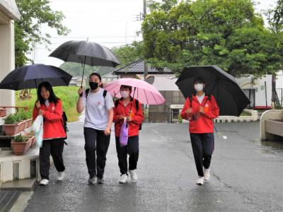 今朝は大雨が心配されましたが、登校時にはさほど強くなく、安心しました。いつも冠水しやすい、歩道橋をのぼったところも、今日はだいじょうぶでした。昇降口には、いつも通りに、生徒たちのさわやかな挨拶と明るい笑顔があふれていました。