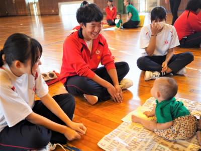 NPO法人「ママの働き方応援隊 豊橋校」より、たくさんのお母さん方と赤ちゃんに来ていただき、『赤ちゃん先生!』を行いました。3年生家庭科「保育」の授業の一環として、3年生生徒一人一人が作成した「パペット(手人形)」を用いるなどして、実際に赤ちゃんや幼児とふれあい、育児を体験しました。「最初は泣かれたり、そっぽを向かれたり、どうしたらよいかわからなかったけど、お母さん方が丁寧に教えてくれ、ゆっくり話したり、赤ちゃん言葉で話したりしたら、喜んでくれてよかった」と感想を述べるなど、赤ちゃん、お母さん方、そして生徒たちの笑顔あふれる授業でした。「ママの働き方応援隊 豊橋校」のみなさん、本当にありがとうございました。「東日新聞社」の取材も受けました。