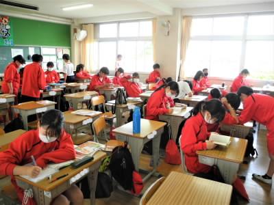 『南陽五輪』を大成功させた生徒たち、今度は『中間テスト』に向けてテスト勉強を頑張っています。昨日の授業後は、3年生が「学習会」を行い、担任や教科担当の教師に質問をしたり、集中して自習をしたりしていました。今日の昼放課に教室をまわると、たくさんの生徒が集中して勉強をしていました。2年生の教室で、学習委員会の生徒が「勉強がんばるよ!」と学級に呼びかける姿が印象的でした。テスト週間の昼放課は、とても放課とは思えない状況でした。