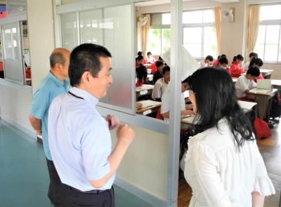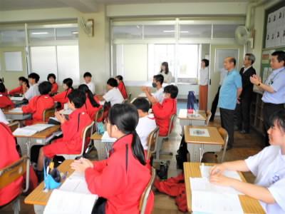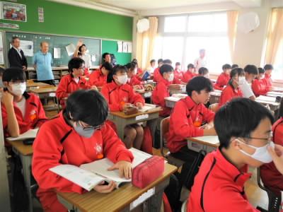 学校評議員(校区等の代表)の方々に、南陽中学校の経営方針や現在の様子等をお伝えし、意見や助言をいただく「学校評議員会」を開催しました。話し合いのあとは、各教室の授業を参観して回りました。どの教室も生徒たちが生き生きと活動する場面がみられ、評議員の方からはさまざまな質問を受けました。また、評議員のみなさんも思わず笑顔になってしまう場面がいくつもありました。生徒たちの「さわやかなあいさつ」と「授業に意欲的に取り組む姿勢」等、たくさんほめていただきました。