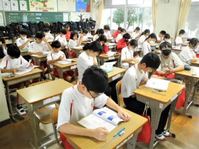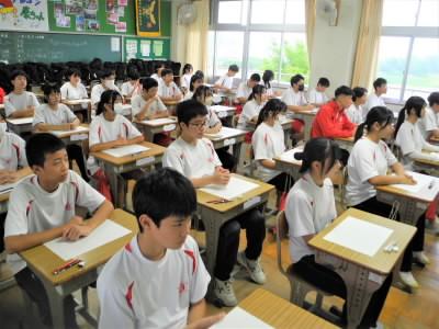 今日、明日と、とても大切な『中間テスト』です。テスト開始直前まで教科書やワーク、ノートを熱心に見直し、問題用紙が配られると緊張がピークに達します。開始のチャイムと同時に、全員が一斉に問題用紙を開いて解き始めます。どの教室からも、どの生徒からも、みんなの「ヤル気」が伝わってきました。あと1日、全力でがんばってください。