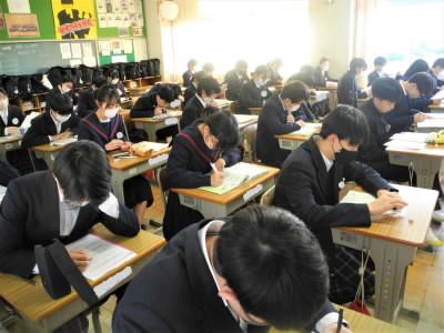 3年生の目の色が変わってきました。「確認テスト」に向けて、朝から時間を惜しんで勉強する姿、授業後の「面接練習」に真剣に取り組む姿、3年生からは『ヤル気』しか伝わってきません。いよいよ入試本番突入です!希望する進路の実現を目指して、悔いのないようにがんばってください。「満開のサクラ」が花開くことを願っています。