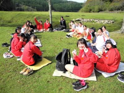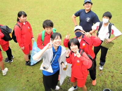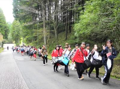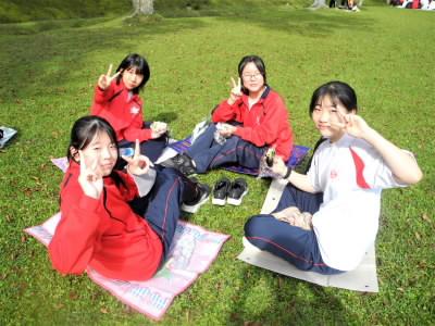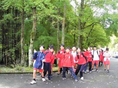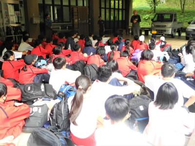 「おにぎり~みんなで支え合って一つをつくりあげよう~」をテーマに、1泊2日の自然体験学習に行ってきました。天候が心配されましたが、雨が降ってきたのは野外炊飯の片づけ時くらいで、全ての日程を予定通り行うことができました。テーマと時間を常に意識し、野外炊飯やキャンプファイヤー、ウォークラリーなどの活動を通して、大きく成長した素晴らしい姿を見せてくれました。仲間と協力する大切さを実感し、友だちのよいところをたくさん見つけて、『1年生の絆』をさらに深めることができたようです。すべての活動に全力で取り組んだ1年生、退所式を終えたあとの顔は、どの生徒も雲ひとつない秋晴れの青空のように輝いていました。