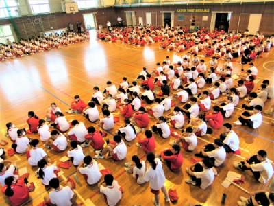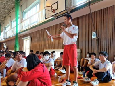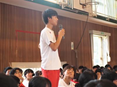 「Nanyo Only Students」…第3回『NOS会』を行いました。今回は9月に開催される「南陽祭」のテーマ決めです。事前に募集して集まった数多くの案、その中から執行部が厳選した3つについて意見が出されました。①スパークリング~みんながはじける南陽祭~(「南陽祭」で南陽中生がはじけるように笑顔で楽しみたい)②自分革命~個々に輝け南陽中生~(誰かだけでなく、一人一人が楽しく輝けるような「南陽祭」にしたい)③ハンバーグ~ジューシーな思い出を作れ!!~(ハンバーグを作る作業に、中の空気を抜く作業があり、そのおかげでジューシーなハンバーグができるので、みんなもぎゅうぎゅうにつまったハンバーグのようにジューシーな思い出をつくってほしい)たくさんの生徒がたくさんの意見を発表し、どれも立派で「なるほど!」というものばかりでした。その中で決定したのが③です。みんなの思いが実現するような「南陽祭」になることを願っています。