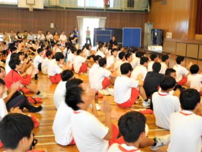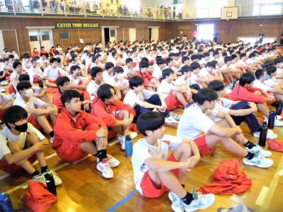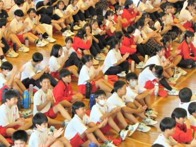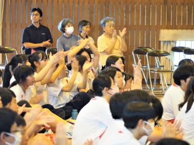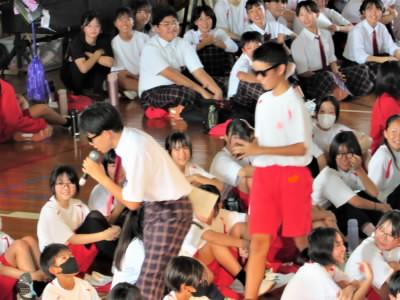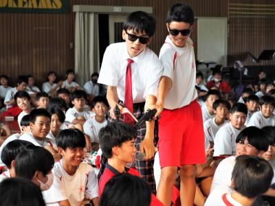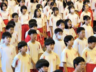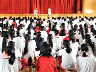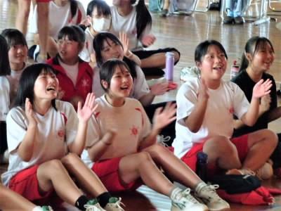 力強い「太鼓部の演奏」に始まり、趣向を凝らした「生徒会企画(ひなたクイズと演劇?コント?)」、歌唱やダンスに漫才、バンド、…15のグループが全校生徒の前で堂々と発表した「有志ステージ」、そして、最後に素敵な音色で全校生徒を魅了した「吹奏楽部の演奏」。笑いあり!笑いあり!!そして、感動あり!!南陽中体育館が『夢の空間』になったかのような、とても素晴らしい『南陽祭』でした。各出演者の意気込みが伝わると同時に、観客の声援や大きな拍手、手拍子が会場を盛り上げ、私自身心が震えました。勇気をもって特技を披露する生徒たち、それを認めて全力でたたえる生徒たち、「南陽中生のみんなは素敵だな」と改めて実感しました。そして何より、夏休み前から企画・準備に取り組んできた生徒会執行部、南陽祭実行委員、全校アート実行委員のみなさん、本当にありがとうございました。